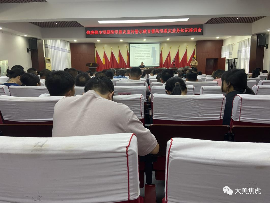 为切实抓好2023年防汛抗旱工作,不断提升全镇应急处置能力和临灾救助能力,7月7日上午,在镇政府二楼会议室召开焦虎镇主汛期防汛救灾宣传警示教育暨防汛救灾业务知识培训会,全体机关干部、各村支部书记及村级自然灾害信息员共220余人参加培训会议。 此次培训重点围绕河南郑州“7.20”事故灾害情况、应对处置方式、造成社会影响、事故主要教训及改进措施建议等方面进行深刻剖析;同时观看了防汛知识的培训视频,充分了解防汛工作要点,学习突发状况预警及应对措施。
