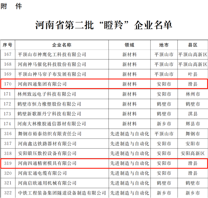 近日,河南省科学技术厅下发了《关于公布河南省第二批“瞪羚”企业名单的通知》,开发区2家企业榜上有名,分别是河南四通集团有限公司和河南四通精密模具有限公司,“瞪羚”企业入库数量再获突破。