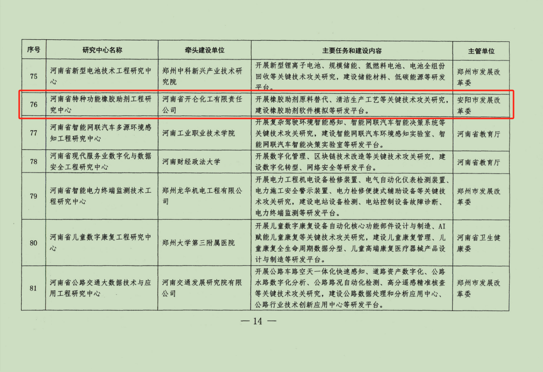 近日,2023年河南省工程研究中心名单公布,全省112家,安阳市通过5家(2家高校、3家企业),其中滑县开发区永发模塑、开仑化工2家企业上榜,目前,开发区河南省工程研究中心共计5家,占全县100%。
