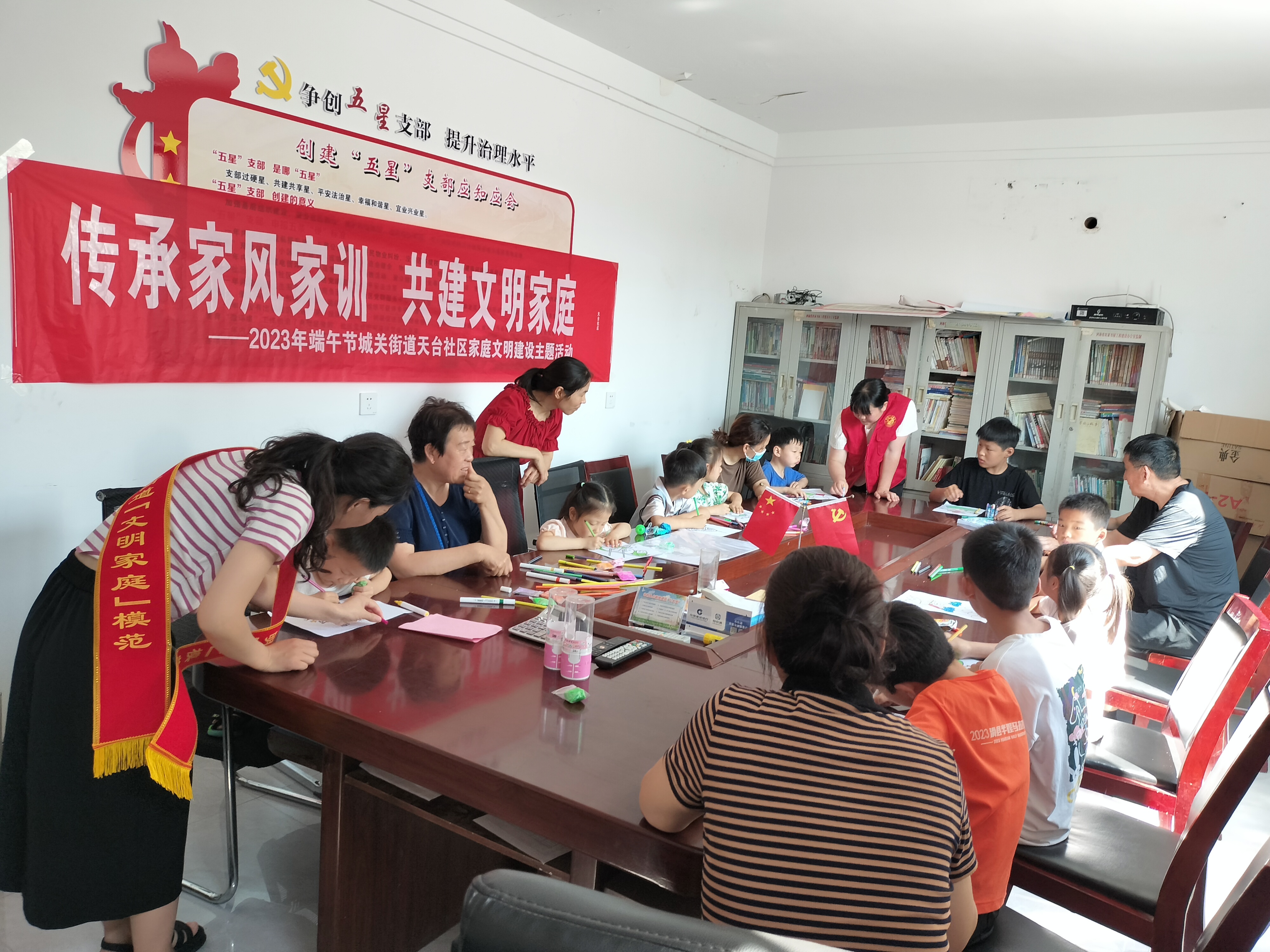 为了深化“我们的节日”,传承和弘扬优秀家风文化和传统文化,发挥传统节日思想熏陶和文化教育功能,铸牢中华民族共同体意识。6月22日上午,城关街道新时代文明实践所在天台社区举办了“我们的节日·端午”传承家风家训 共建文明家庭亲子主题活动。