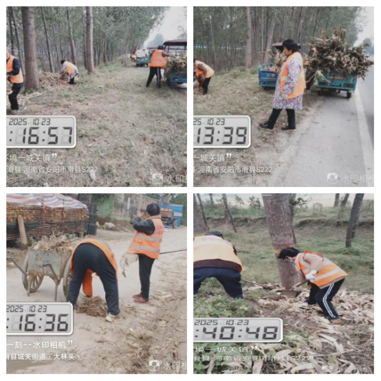 在清理工作中,保洁人员结合辖区实际情况,重点对村庄房前屋后、田间地头、沟渠河道以及222省道沿线等区域的秸秆进行全面捡拾与及时清运,有效避免了秸秆散落堆积影响村容村貌的问题。同时,各村充分利用村室大喇叭,循环宣传秸秆禁烧相关知识,向村民普及秸秆随意堆放、焚烧的危害,引导农户主动参与到秸秆清理工作中来,在辖区内形成了“全员共治”的良好氛围。