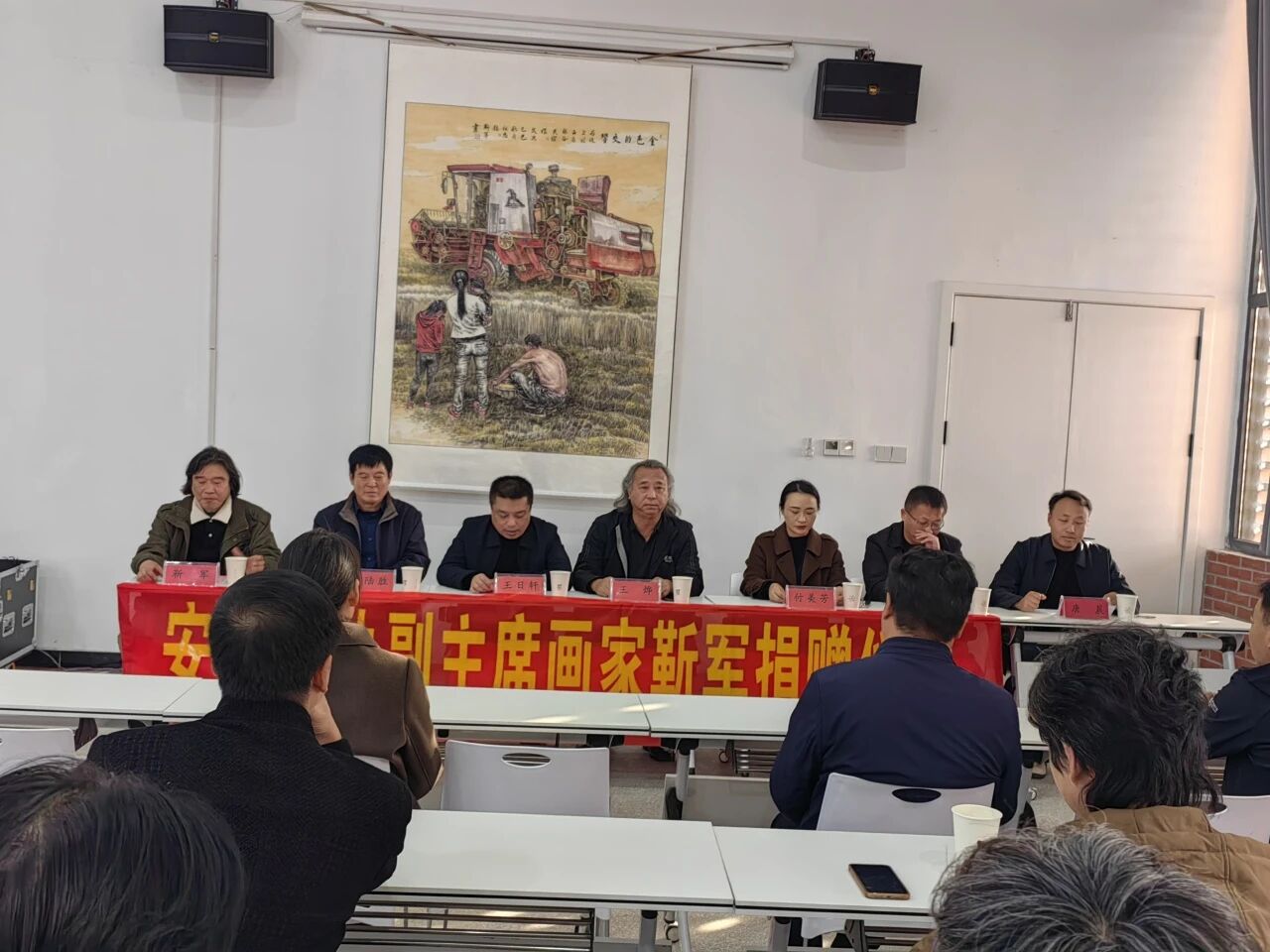 11月9日,安阳市美术家协会副主席、县政协委员靳军先生画作《金色的交响》捐赠仪式在堤上村举行。安阳市美术家协会主席王烨、秘书长王永刚,滑县文学艺术界联合会主席付美芳,滑县美术家协会主席张陆胜、秘书长王辉,枣村乡党委副书记、乡长王日轩,以及部分县美协理事会成员、堤上村“两委”干部共同参加了捐赠仪式。