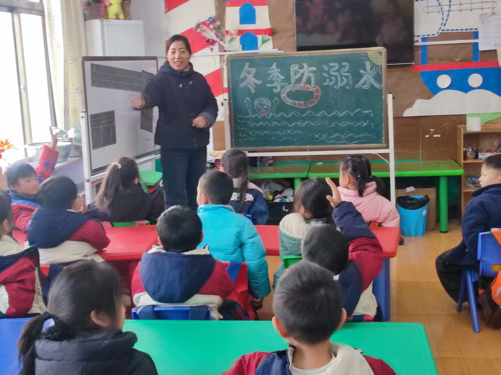 课堂上,工作人员充分结合幼儿认知规律和年龄特点,摒弃枯燥说教,通过卡通安全板报展示、趣味情景模拟、互动问答闯关等幼儿喜闻乐见的形式,直观形象地讲解冬季防溺水的必要性和紧迫性。重点围绕冬季结冰水域的隐蔽危险、如何远离危险水域、意外落水时的正确自救方法及如何寻求帮助等关键内容进行细致科普。工作人员还与小朋友们开展互动问答,“冬天能不能去河边玩呀?”“如果看到小伙伴落水要怎么办呀?”一个个贴近生活的问题抛出后,孩子们踊跃举手、积极抢答,在寓教于乐的轻松氛围中深化了对安全知识的记忆与理解。