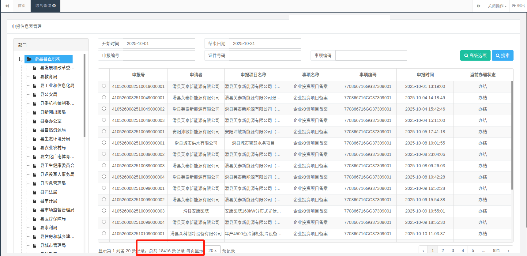 2025年10月办事统计