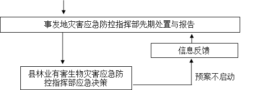事发地乡镇政府(街道办)经先期处置不能有效控制灾害,灾情发展蔓延为跨乡镇(街道)区域的,乡镇政府(街道办)应立即报告县指挥部办公室,经现场核实综合评估后,提出启动县林业有害生物灾害应急预案建议,报请县指挥部批准启动本预案。