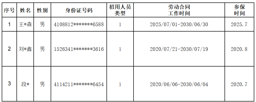 根据河南省人力资源和社会保障厅国家税务总局河南省税务局关于规范企业吸纳重点群体就业认定证明的 通知》(豫人社函〔2023〕194号)《河南省财政厅国家税务总局河南省税务局河南省人力资源和社会保障厅河南省乡村 振兴局关于进一步支持重点群体创业就业有关税收政策的公 告》(河南省财政厅公告2023年第1号)《安阳市人力资源和社会保障局国家税务总局安阳市税务局安阳市乡村振兴局关于进一步落实支持重点群体创业就业有关税收政策的通知》 (安人社就业〔2023〕24号)文件要求,现对河南京能滑州热电有限公司符合要求的3人进行公示,