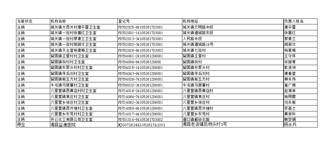 滑县医疗机构注销公示